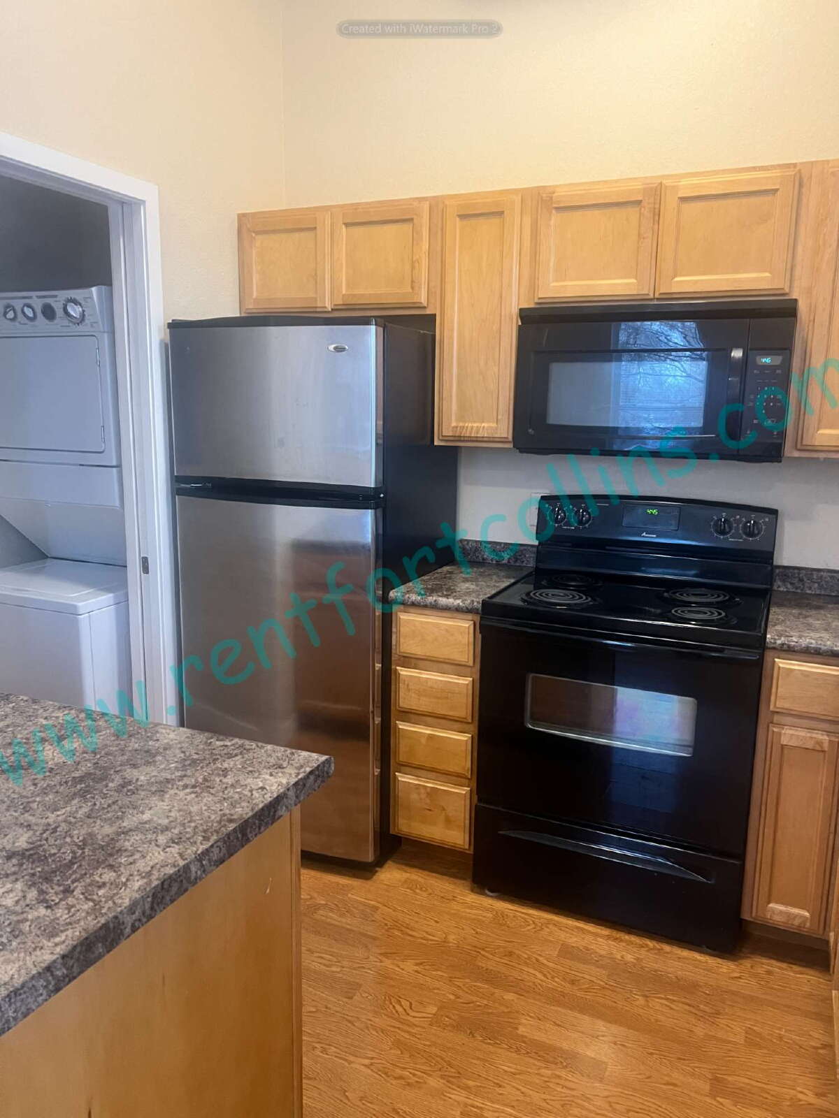 Bright and inviting studio apartment featuring large windows for abundant natural light and LVP flooring throughout for easy maintenance. Enjoy the convenience of an attached garage with one parking space, plus a separate storage unit. The unit includes a stacked washer and dryer for added comfort. Ideally located within walking distance to Old Town Fort Collins and the CSU campus, offering easy access to shopping, dining, and entertainment.