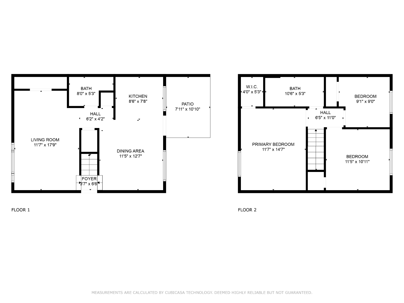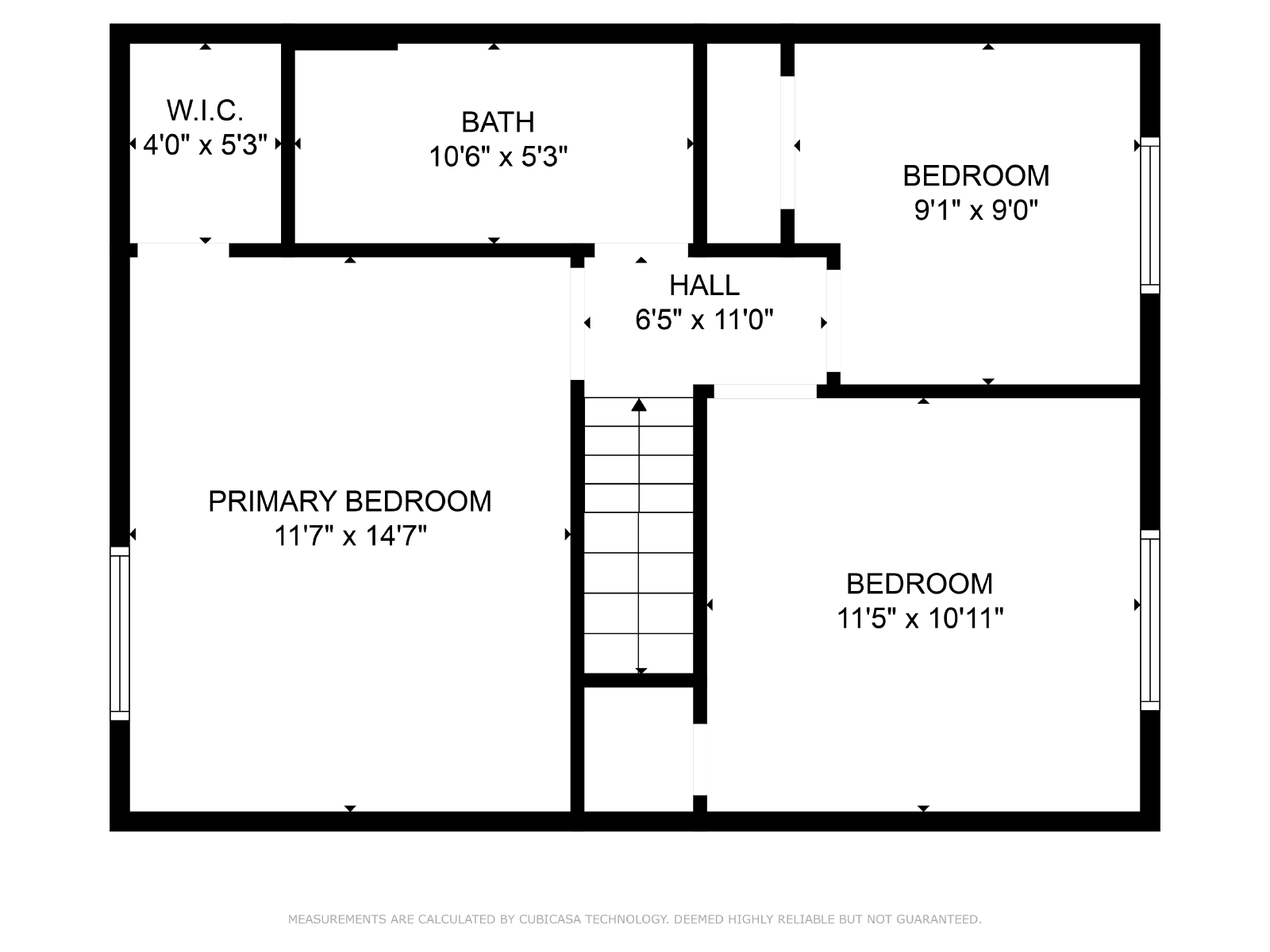 Main level includes kitchen, dining, living, and a convenient half-bath with laundry. All three bedrooms and a full bathroom are located upstairs. Primary bedroom is large enough for a king bed, second bedroom fits a queen, and third bedroom fits a twin (tight).